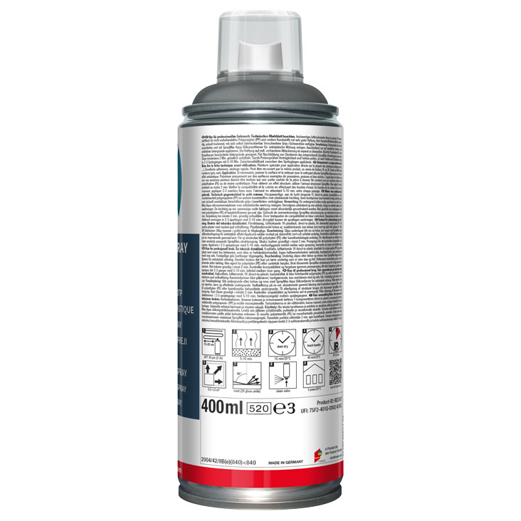 Spezialprodukt für die schnelle Decklackierung von Kunststoffoberflächen in Standardgrautönen. Schnelle Prozesse da direkt auf Kunststoffflächen einsetzbar, kein zusätzlicher Haftvermittler notwendig. Optimale Ergänzung zu den im System erhältlichen Struktur-Sprays. Für hervorragende Lackierergebnisse auf Kunststoff.