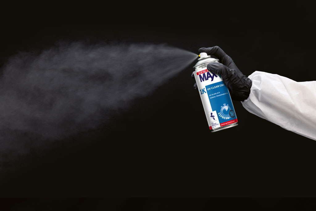 UV-härtendes Klarlackspray auf Acrylbasis für Reparaturlackierungen.