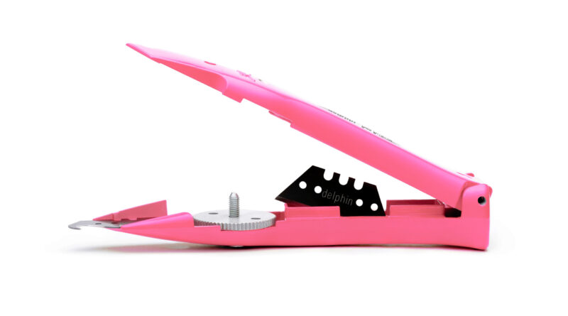 Eines der beliebtesten Teppichmesser aus Aluminium zum Schneiden von Teppichböden, PVC-Belägen, Bitumenbahnen, Dämmstoffen, usw. Schneller Klingenwechsel durch langjährig bewährtes Verschluss-System. Innenliegendes Klingenfach. Sichere Aufbewahrung im mitgelieferten Kunststoffköcher. Die Form des Delphin® 03 ist mittlerweile zu dem Markenzeichen der Firma Reddig GmbH geworden. Entscheiden auch Sie sich für ein Original „Delphin®-Messer“.