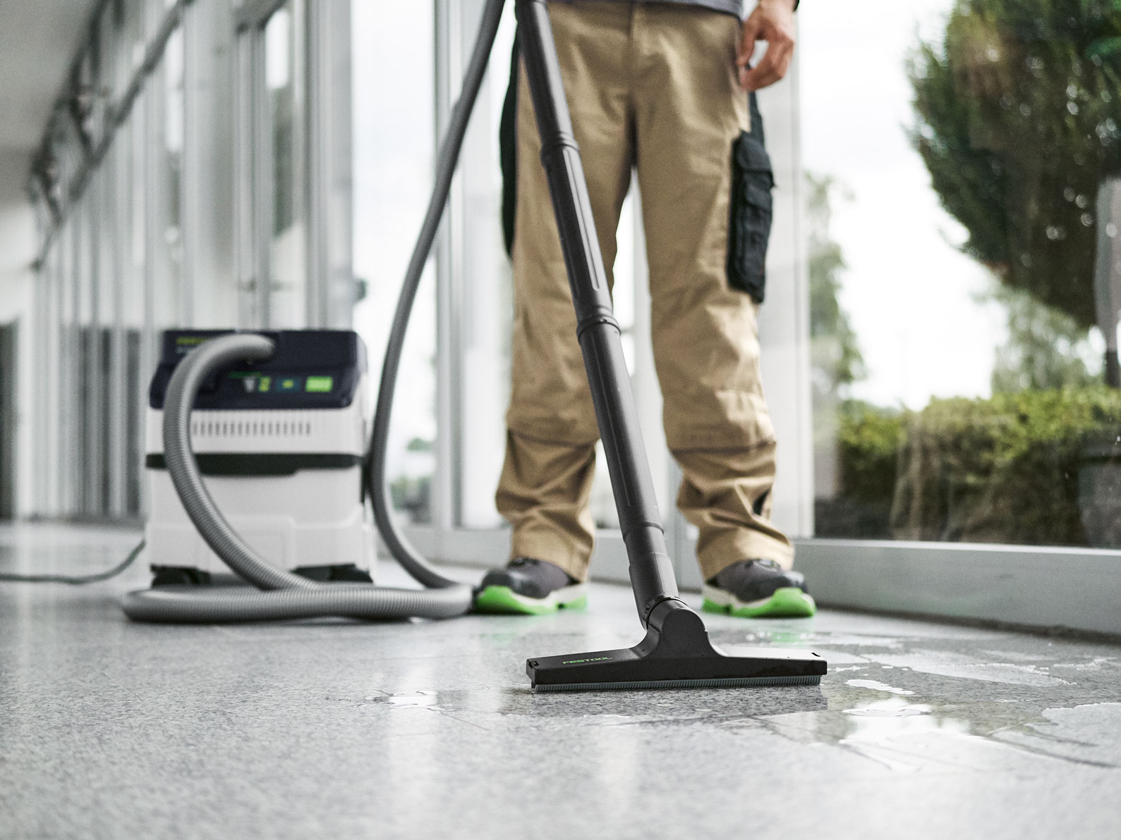 Beim CT 15 ist das Reinigungszubehör Fugen- und Polsterdüse direkt im Lieferumfang dabei und kann im Absaugmobil untergebracht werden. Dank der ebenen Ablagefläche sind Arbeitsmaterialien und andere Hilfsmittel immer in Reichweite. Der Saugschlauch mit Antistatik-Funktion verhindert zudem die statische Aufladung beim Arbeiten.
