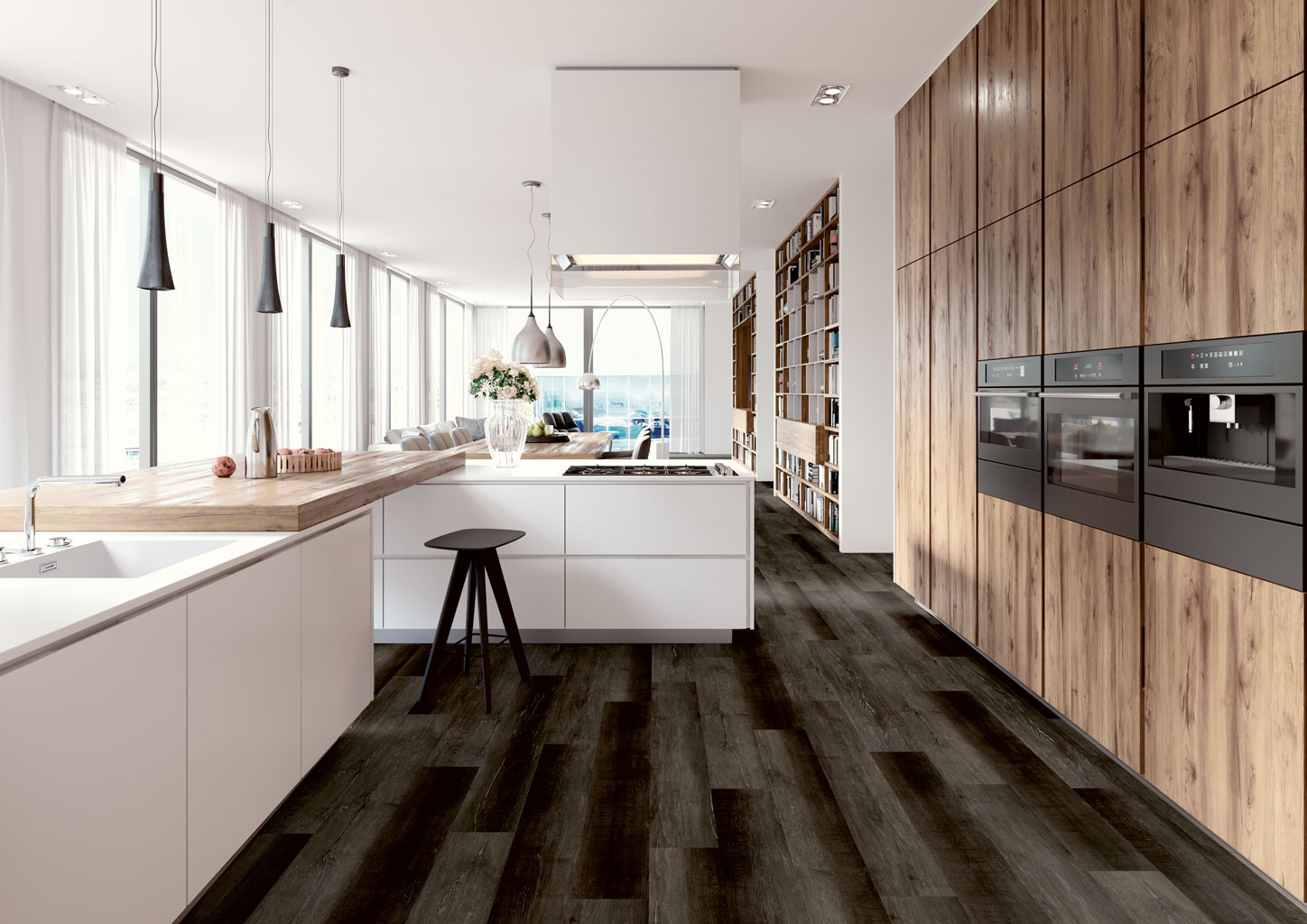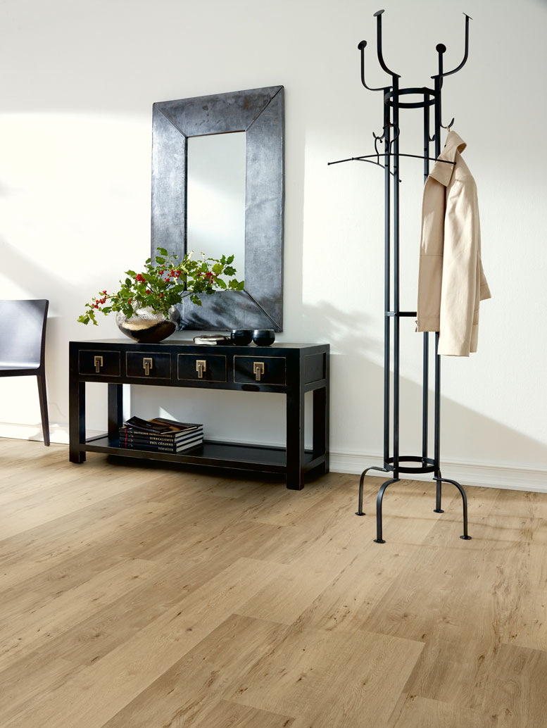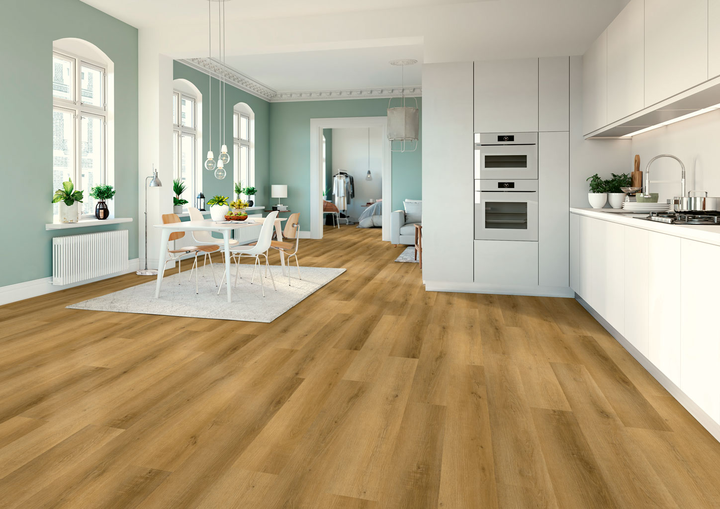 Die Wohn-Kollektion EXPONA LIVING ist vielseitig und flexibel. Jedes Dessin gibt es zum Kleben und zum Klicken – und sechs authentische Holzoptiken sogar als Fischgrät-CLIC-Planken.